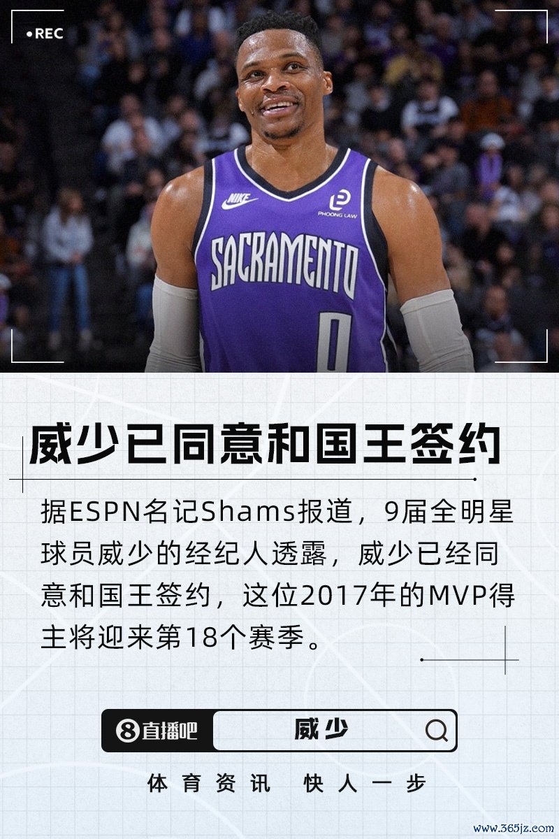 突发新闻:9届明星赛球员威少的经纪人&Excel Sports Management的Jeff Schwartz向ESPN透露,威少已经同意和国王签约,品味运动风采这位2017年的最有价值球员得主即将迎来他的第18个NBA赛季;