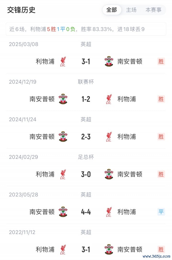 利物浦联赛5战全胜积15分暂位英超榜首, 网球新闻目前各项赛事6连胜;南安普顿联赛1胜3平2负积6分暂位英冠第19,近3轮联赛不胜。利物浦各赛事对阵南安普顿已9场不败(8胜1平)。