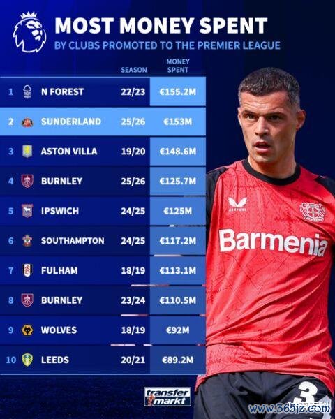 对于大多数升入英超联赛的俱乐部来说,主要目标就是生存。过去两个赛季,6支升班马球队全部在首个赛季便降级。这给了桑德兰、伯恩利等2025-26赛季升班马球队提了醒。要想生存,就要加大投入。