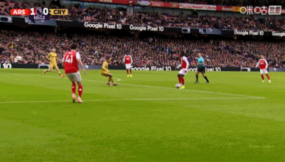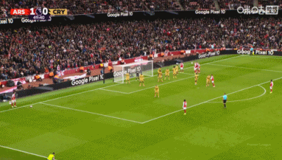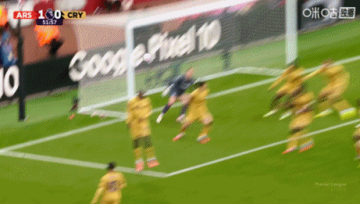 阿森纳前场定位球机会,加布里埃尔头球中框,赖斯补射再被封出