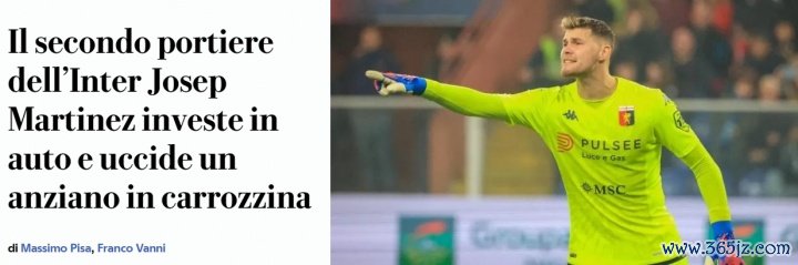 报道称,国际米兰替补门将何塞普-马丁内斯在费内格罗市驾车撞倒一名乘坐电动轮椅的人士并致其死亡,品味运动风采事发地点靠近阿皮亚诺真蒂莱镇, 足球资讯距球队训练基地不远。遇难者是一名81岁老人。