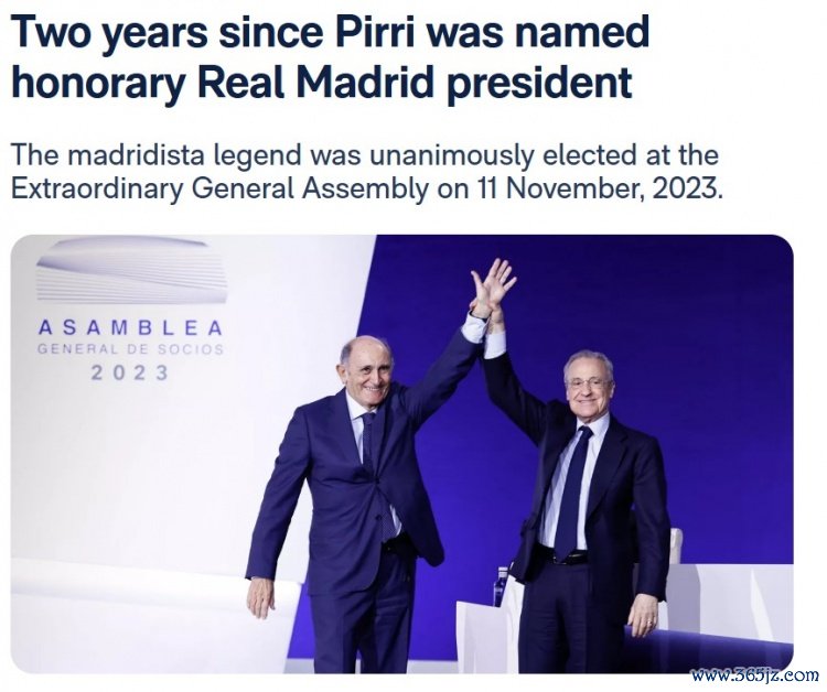 皮里担任皇马荣誉主席已满两周年,皇马官方发文纪念