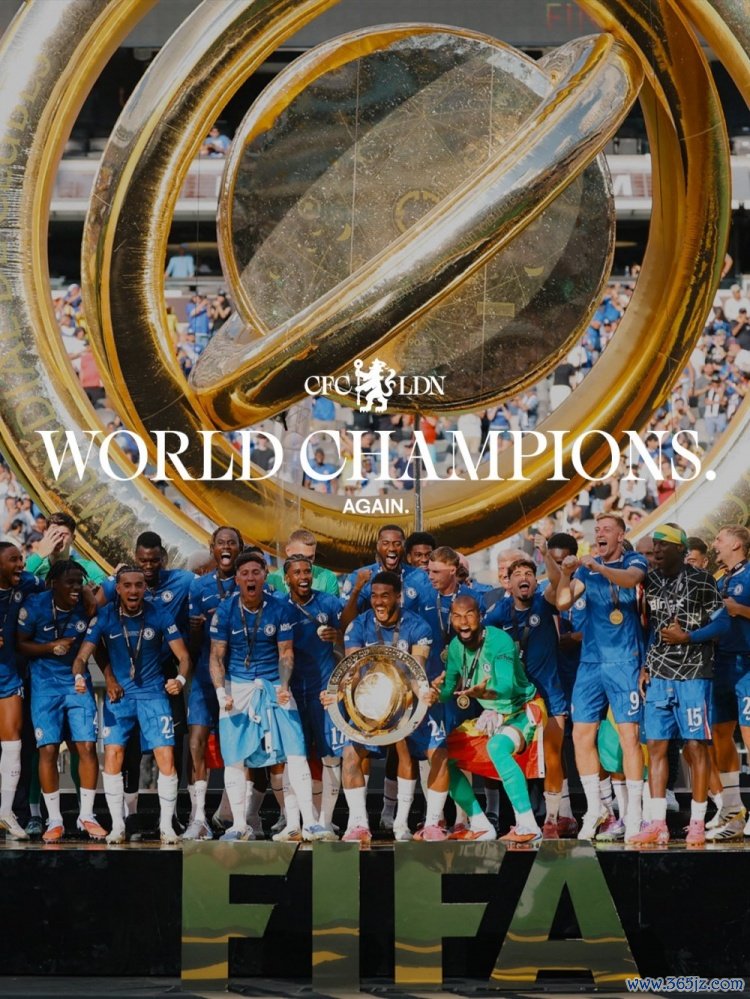 切尔西官推晒捧杯瞬间纪念海报:切尔西再次成为世界第一名 !