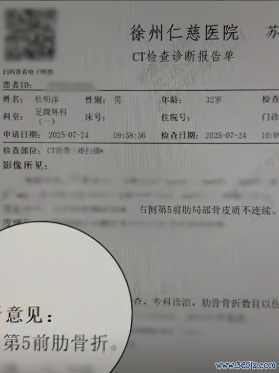 早日复健 🙏徐州队领队 杜明洋晒出伤情 为第5前肋骨裂