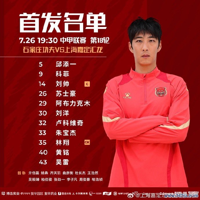 上海嘉定汇龙VS石家庄功夫杆位阵形 已出!