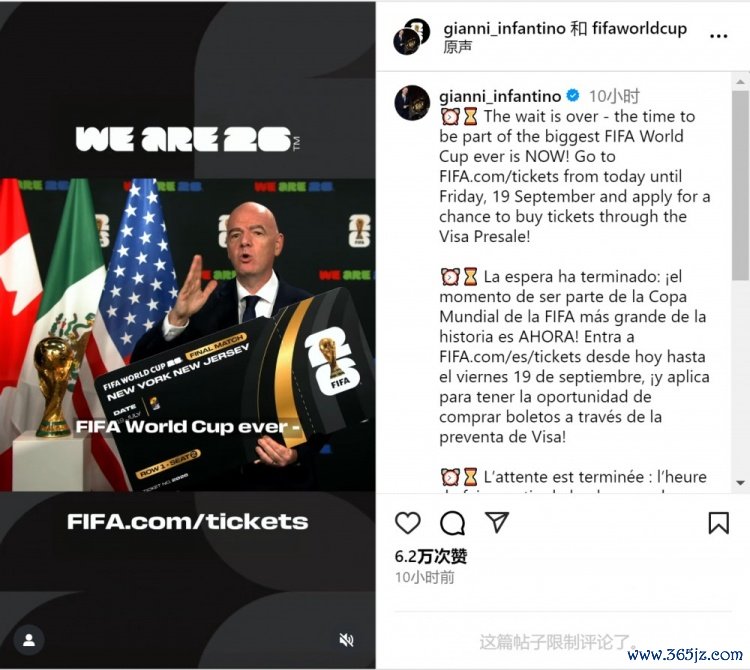 就这?因凡蒂诺两天前称有重大消息,今日宣布世界杯赛 售票