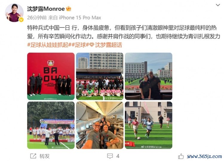 在长春加入 勒沃库森古代足球 学院活动,沈梦露发文谈感受