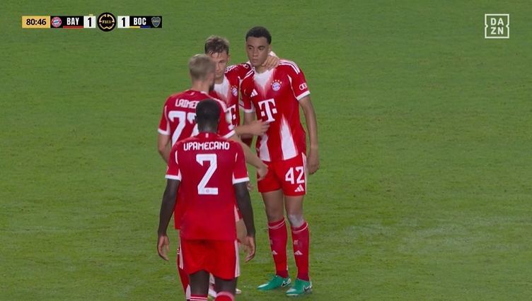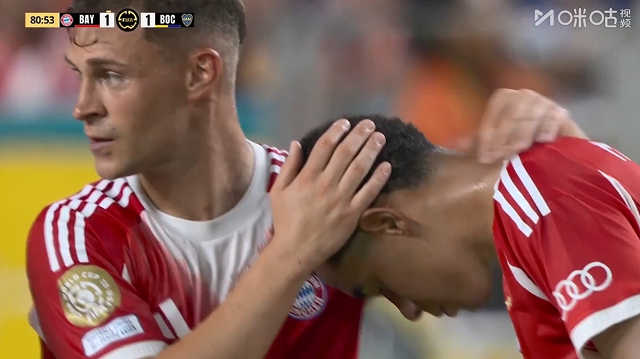 坏了😰穆西亚拉后备 登场又伤退,基米希指着小腿&队友集体安慰