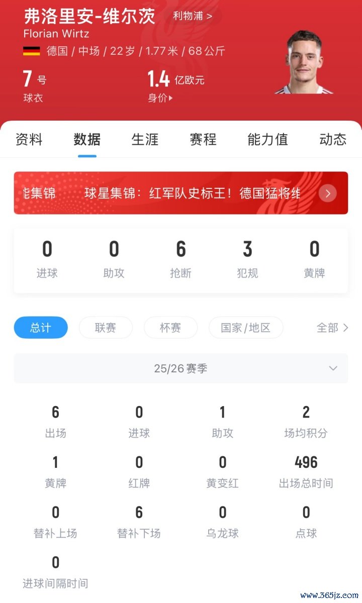 表现如何?维尔茨1.36亿欧加盟利物浦,出战6场0球1助