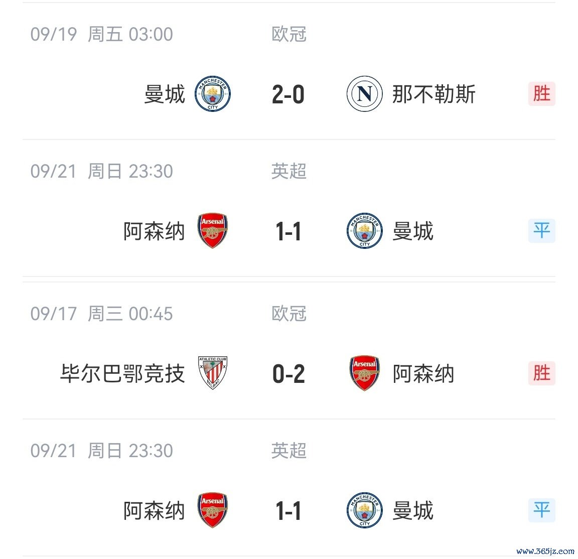 曼城9月19日3点主场作战 2-0那不勒斯,9月21日23点30客场应战 应战 阿森纳,两场赛事 的开球时间间隔了2天20个小时30分钟。
