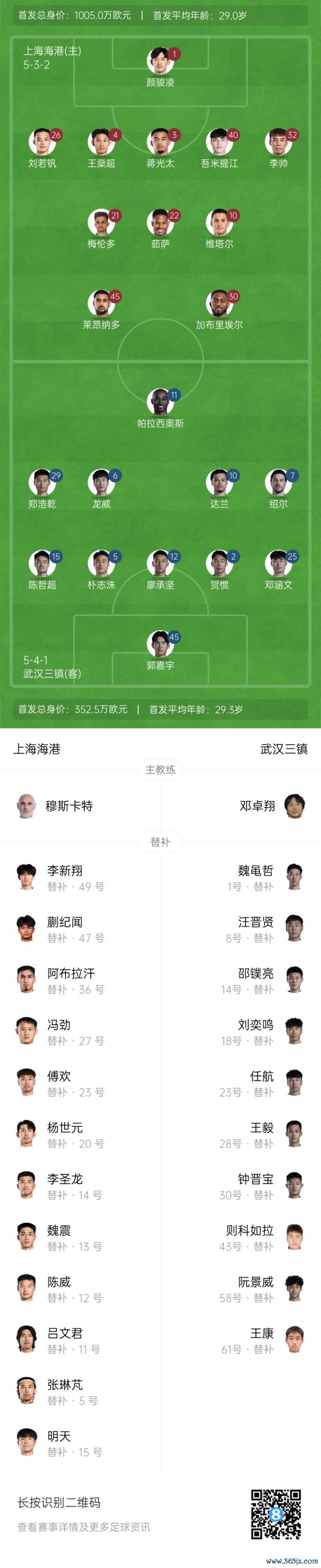 09月26日讯 北京时间20点,中超第26轮,上海海港主场作战 迎战武汉三镇中超联赛,品味运动风采直播吧赛前双方公布杆位。