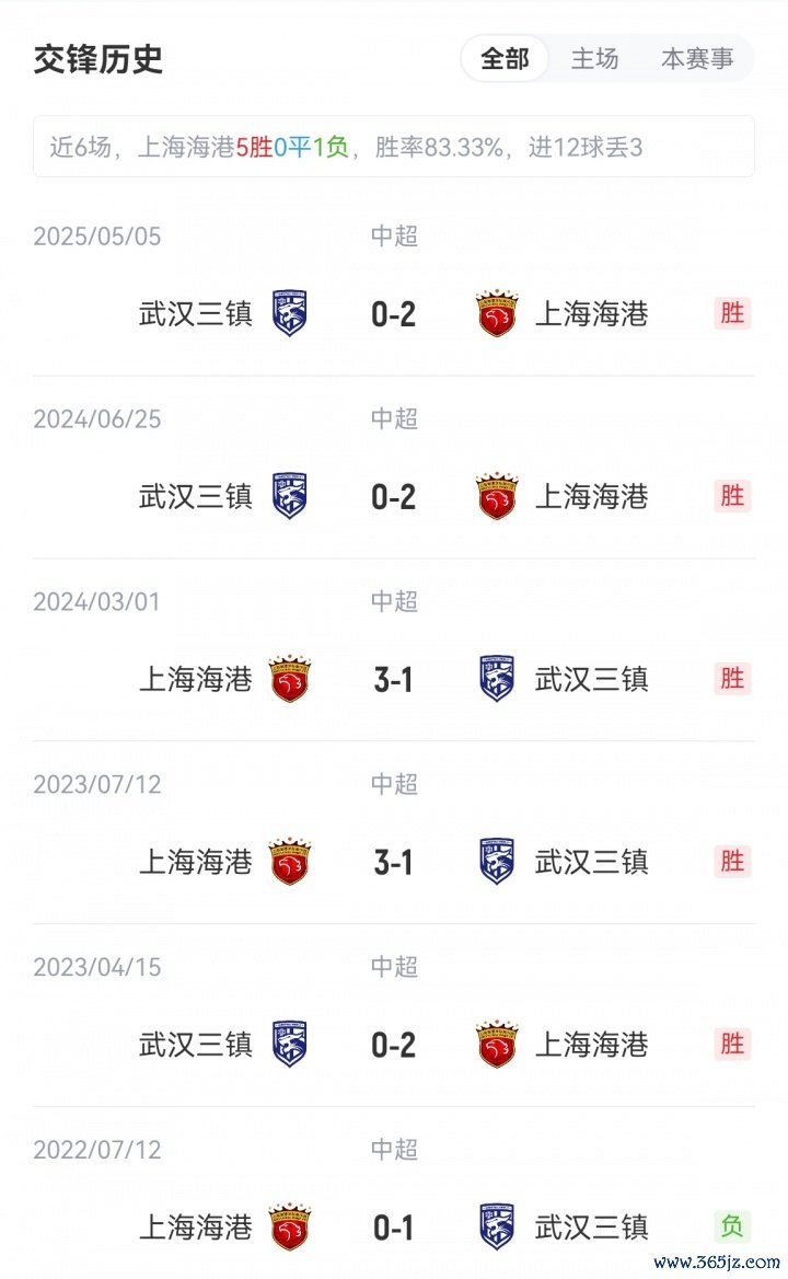 上海海港16胜6平3负积54分, 足球资讯排名中超第2;武汉三镇6胜6平13负积24分, 网球新闻排名中超第12。