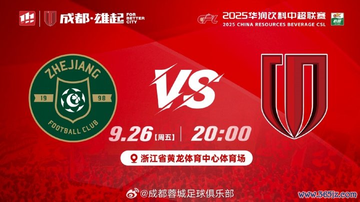 09月26日讯 北京时间今晚20点,中超第26轮中超直播免费直播视频直播,浙江vs蓉城,赛前杆位阵形 出炉!