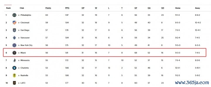 迈阿密急制动!常规赛冲刺跑 迈阿密2轮不胜,费城联合周日赢球夺魁