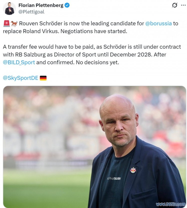 德天空:门兴有意聘请施罗德担任总监,需向萨尔茨堡支付补偿金