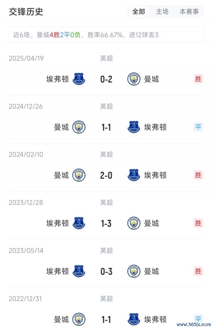 截至赛前,曼城4胜1平2负积13分,排名英超积分榜第5;埃弗顿3胜2平2负积11分,排名英超积分榜第8。